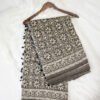 Complementing the body is a striking indigo blue border highlighted with Zari-inspired detailing, adding depth and sophistication. The natural cotton fabric ensures breathability and comfort, making it ideal for long wear. Perfect for cultural gatherings, festive occasions, and elegant day events, this saree blends heritage design with contemporary simplicity.