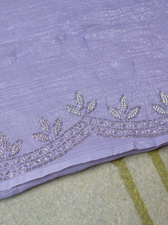 Lavender Ruffle Border Embellished Saree with Sequin handwork Detailing