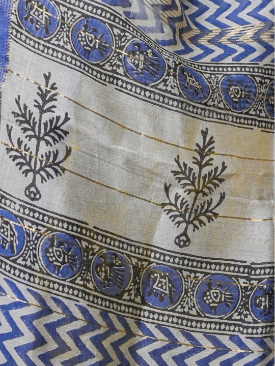 Maheshwari Silk Saree with Royal Blue Border and Traditional Woven Motifs